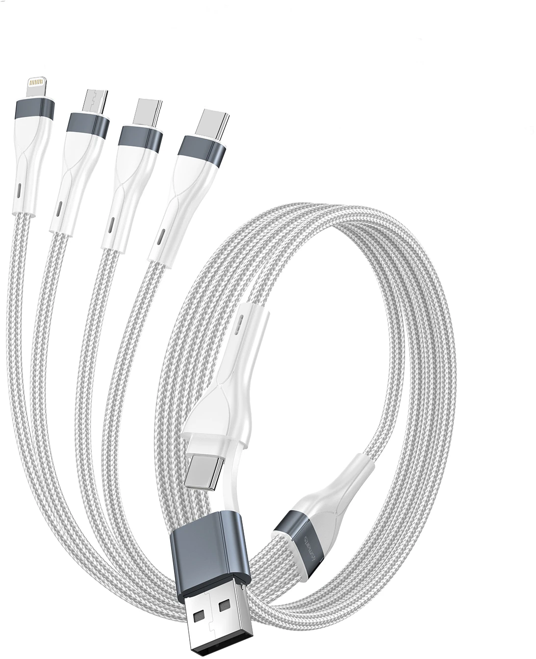 Entdecke die Vielseitigkeit unseres 4in2 Ladekabels! Mit einem Lightning-Anschluss für Apple-Geräte und zusätzlichen Micro-USB und USB-C Steckern, kannst du nicht nur deine iPhones und Apple-Gadgets aufladen, sondern auch problemlos Android-Smartphones mit Energie versorgen. Anstatt ewiger Kabelsuche hast du immer alle benötigten Anschlüsse zur Hand und sparst dir den Kabelsalat. Laden war noch nie so flexibel.