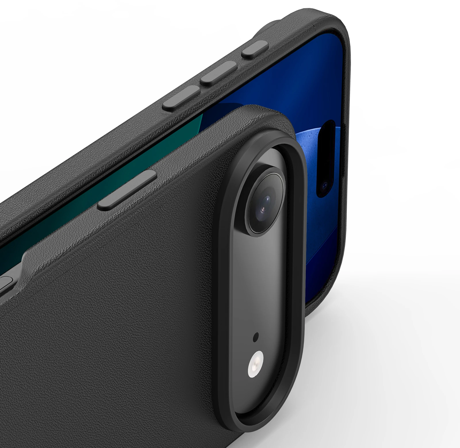 Die Anschlüsse, Knöpfe und Kamera bleiben voll zugänglich.