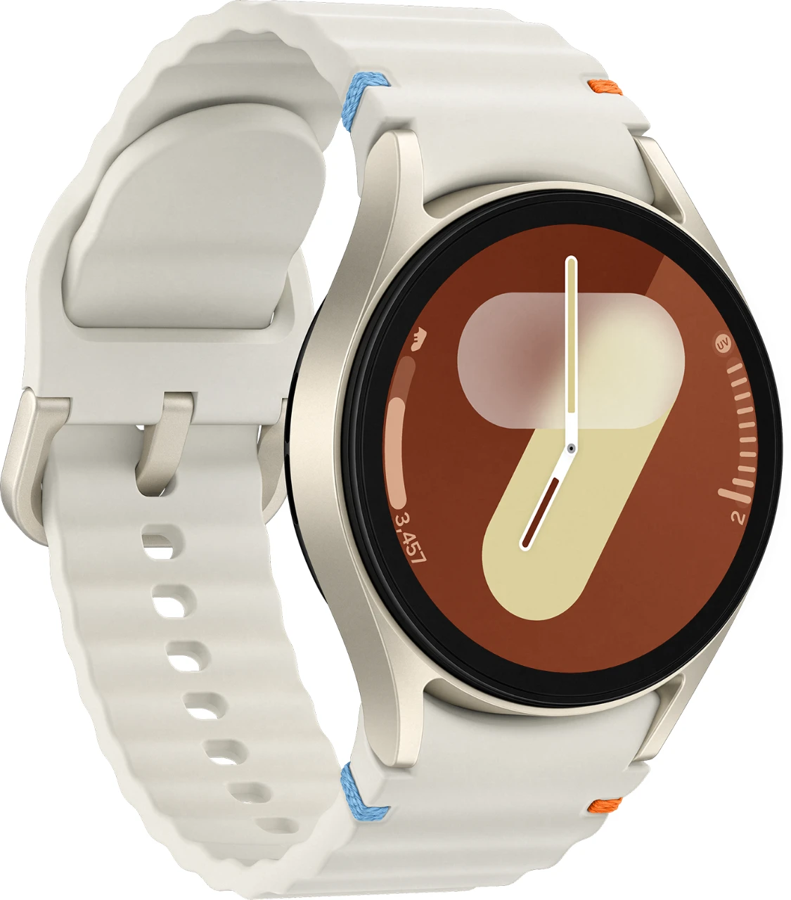 Obwohl die Galaxy Watch7 vollgepackt ist mit vielseitigen Funktionen, liegt ihr Aluminium Gehäuse angenehm flach und leicht an deinem Handgelenk. Zeitlos schön und dennoch voll im Trend sind die natürlichen Farbvarianten Green und Cream beim 40-mm-Modell sowie Green und Silver beim 44-mm-Modell. Runde deinen persönlichen Favoriten mit der großen Auswahl an einfach wechselbaren Armbändern ab. Damit kannst du deine Galaxy Watch7 zu deinem perfekten Begleiter beim Workout, in deiner Freizeit oder auf der nächsten Party machen. Und rund um die Uhr von der intelligenten Galaxy AI-Power an deinem Handgelenk profitieren.